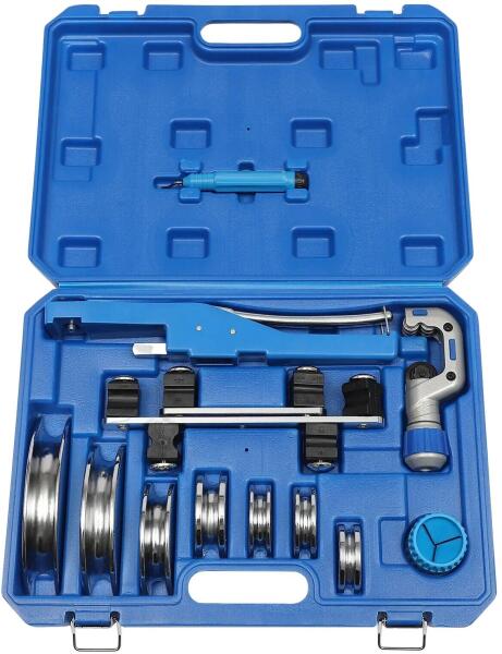 Kézi csőhajlító gép szettel - Precíz hajlítás könnyedén! ?️ Ez a kézi működtetésű csőhajlító gép ideális választás különféle csőanyagok pontos hajlításához. A mellékelt szerszámokkal és hajlítófejekkel a munka gyors és egyszerű. Főbb jellemzők: ? Sokoldalú alkalmazás: Különböző csőanyagokhoz használható. ⚙️ Precíz vágás és simítás: Csővágóval a tiszta vágásokért és sorjázó szerszámmal a sima élekért. ? Teljes készlet: 7 hajlítófejjel és alapvető szerszámokkal a hatékony munkavégzéshez. ⚖️ Könnyű kialakítás: Mindössze 3 kg, így könnyen szállítható és tárolható. ? Felhasználóbarát: Könnyen érthető használati útmutatóval. Műszaki adatok:Jellemző ÉrtékAnyag Alumíniumötvözet, acélMaximális szög 90°Átmérőtartomány 6-22 mmSúly 3 kgEzzel a kézi csőhajlító géppel a csőhajlítás egyszerűbb és precízebb, mint valaha! ✨